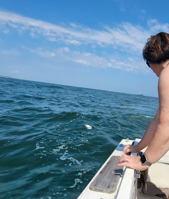 My husband and I took the other half and took her out to sea, thanks to some close friends who offered to take us out on their boat, and we released her into the ocean.
