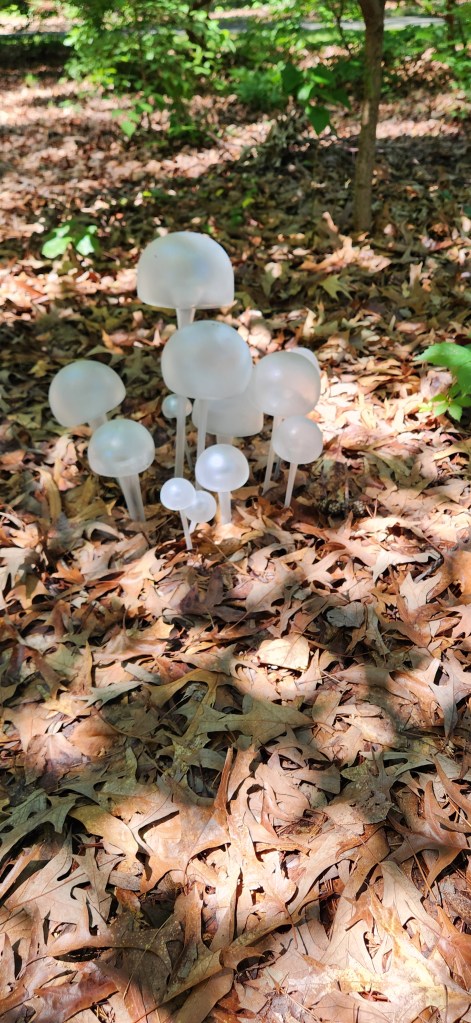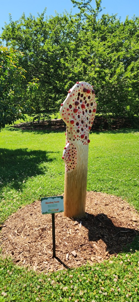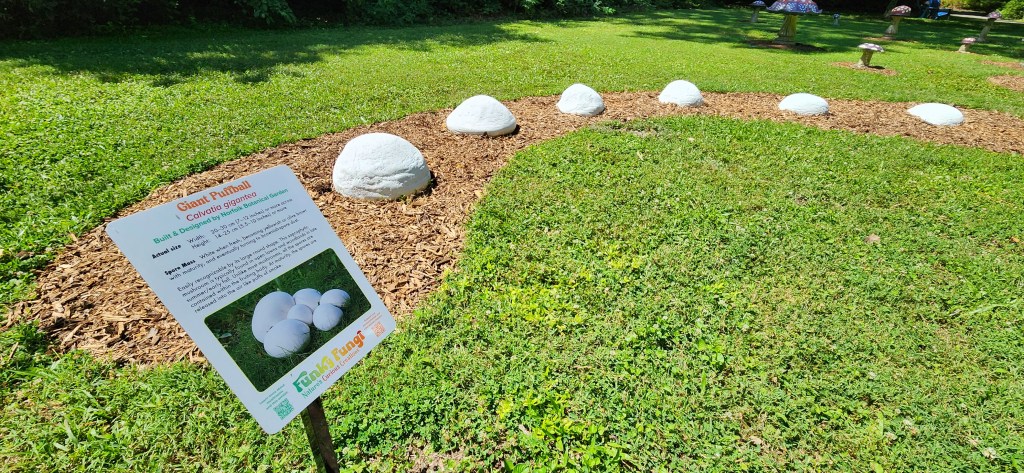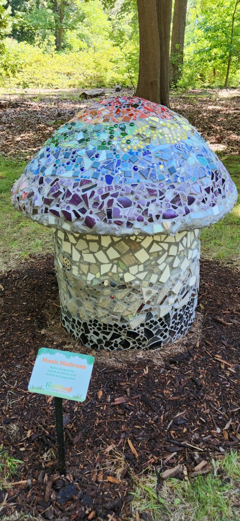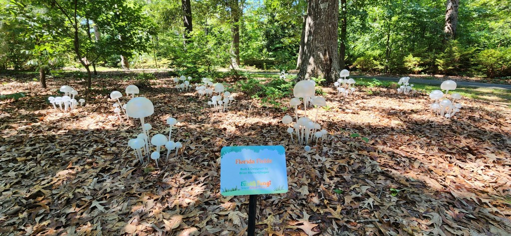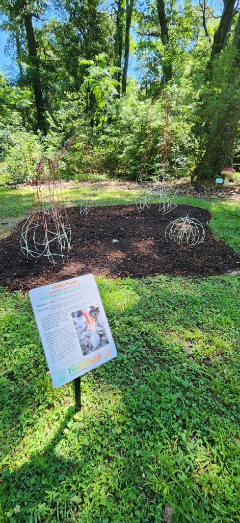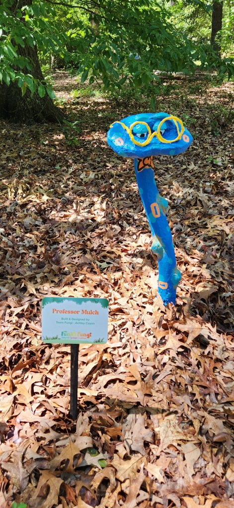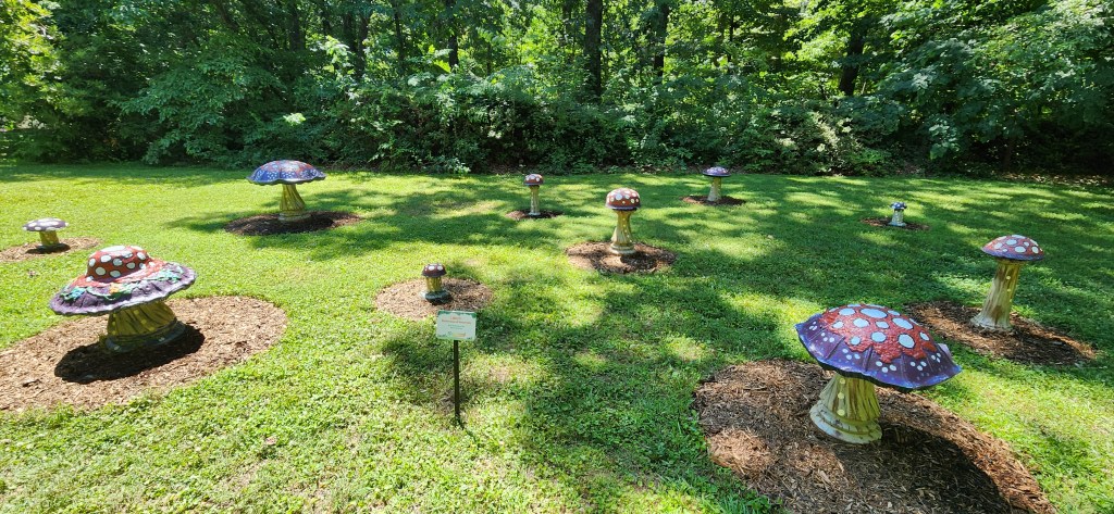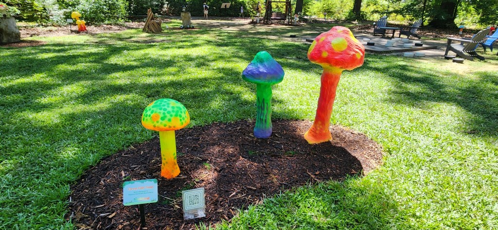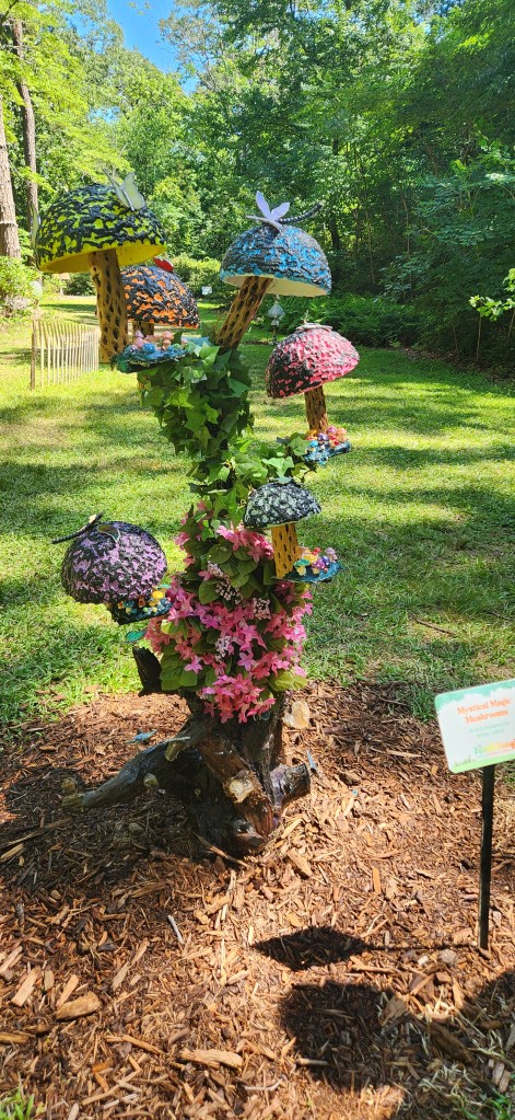 Strolling through the Garden is relaxing and at times, full of surprises. During our visit, we had a “Funky Fungi” experience during which we learned a lot about the various kinds of mushrooms and their benefits to the environment. In addition to becoming more educated, we were pleasantly surprised to see quite a large variety of mushroom art exhibited throughout the Enchanted Forest section of the Garden.